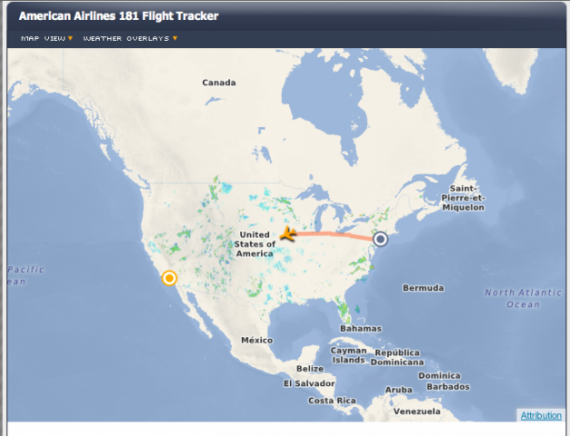 I'm 30,000 feet in the air. I am currently west of Chicago enroute from JFK to LAX. Because I was delayed from JFK and have a connection in LAX to Sydney, Australia, which I could well miss, I am nervously following our progress on www.flightstats.com which is tracking AA181 live, while I am browsing the web from 30,000 feet on www.gogoair.com ... live.